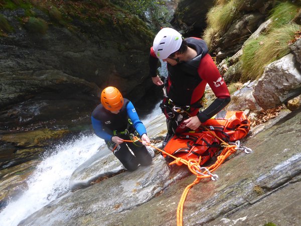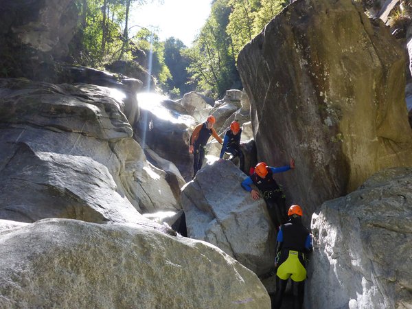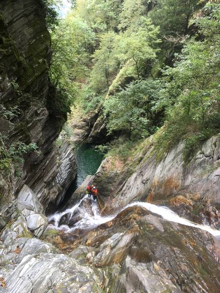 - 1. Tag Canyoning im Boggera inferiore - sehr spaßiger Canyon. Hier werden die Grundlagen geübt (abseilen, springen, rutschen)
